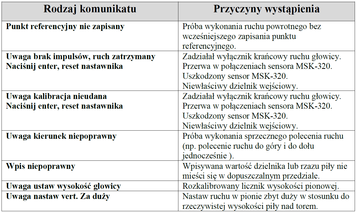 Wykaz błędów mogących wystąpić podczas pracy nastawnika ANT-2G